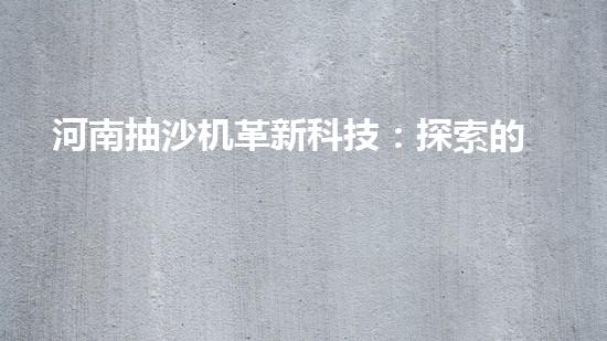 湛江抽沙機《創新科技:顛覆沙地開發的新型抽沙設備革命?》